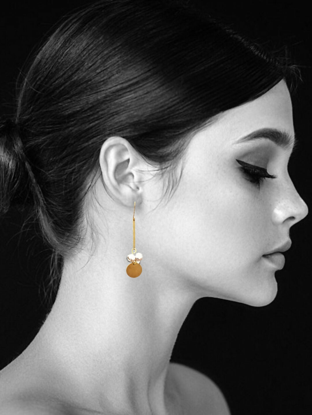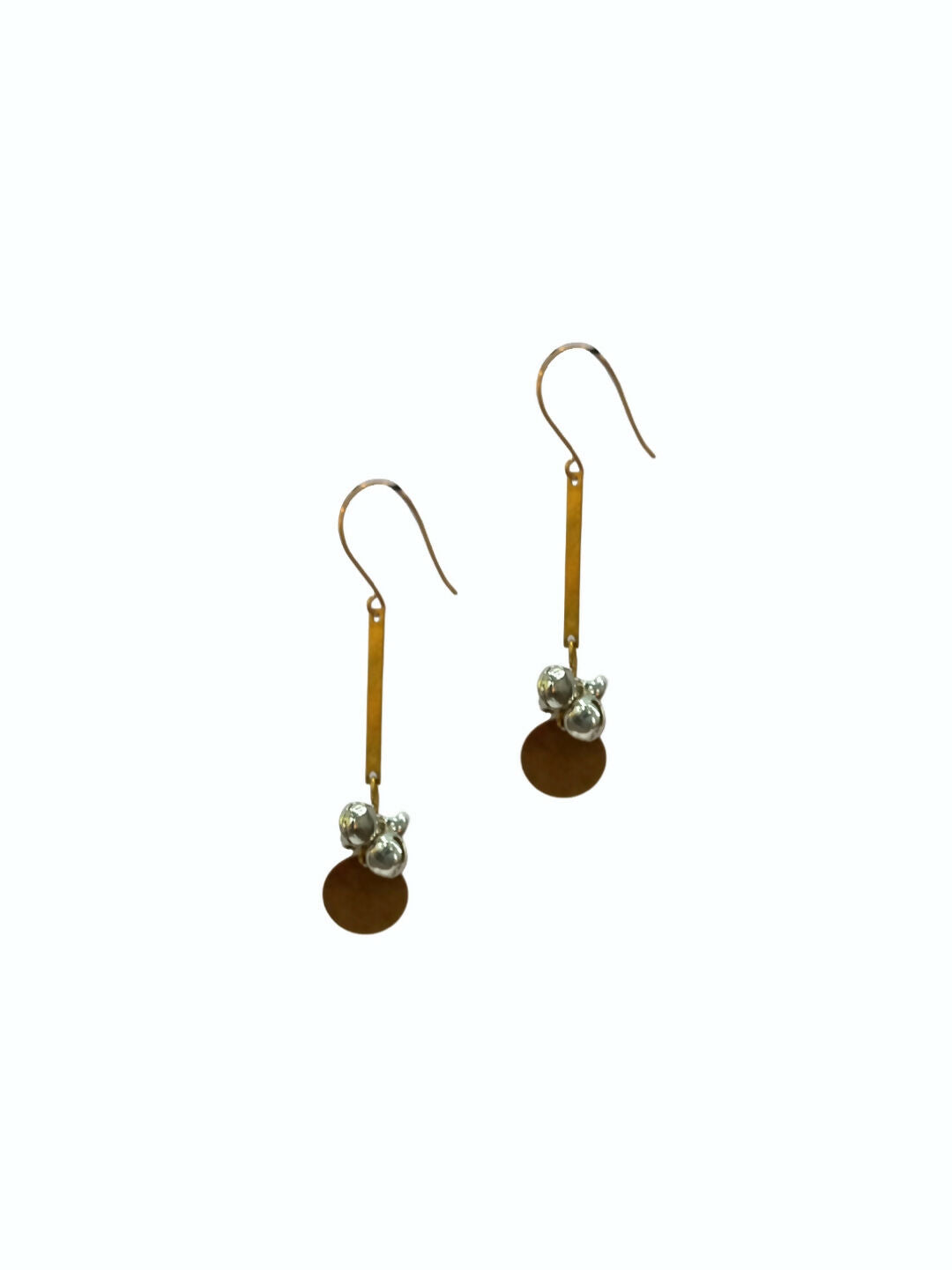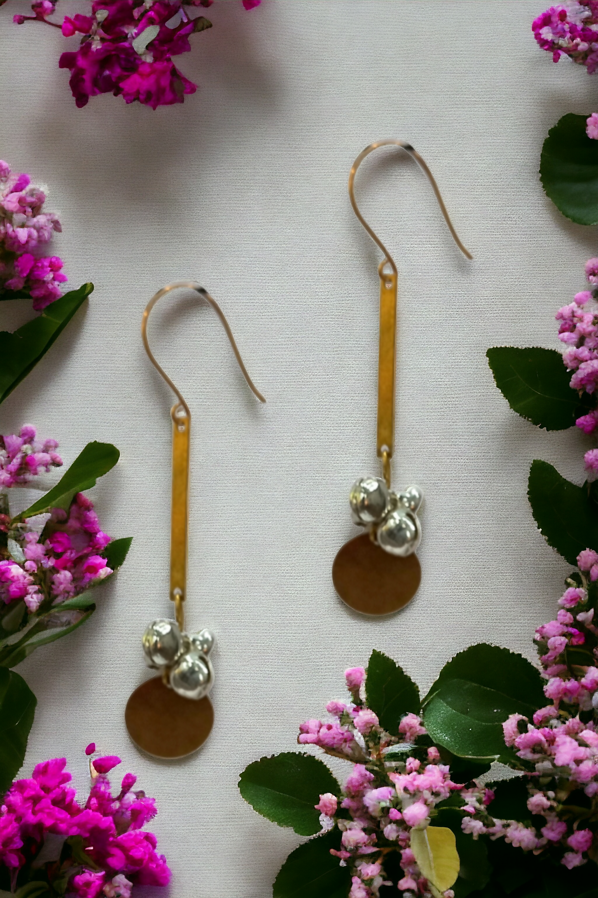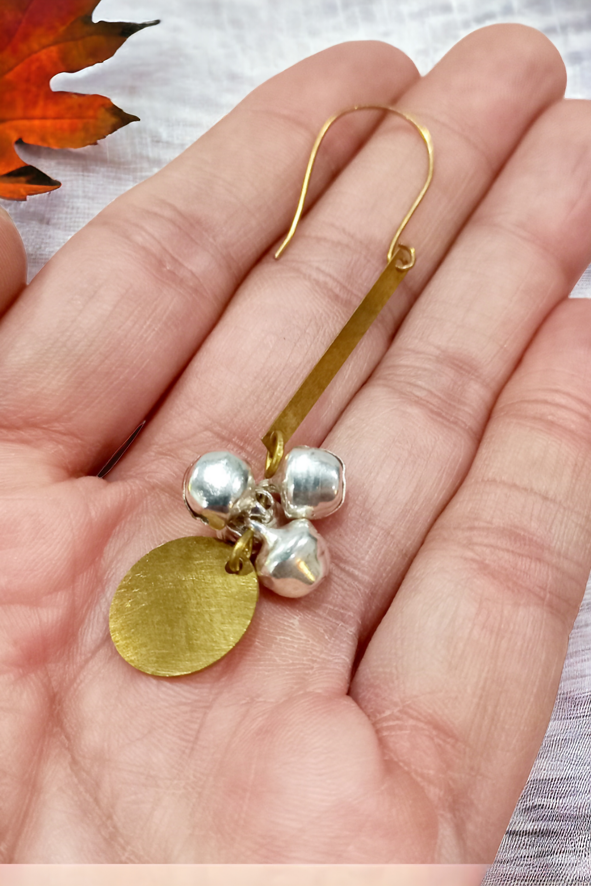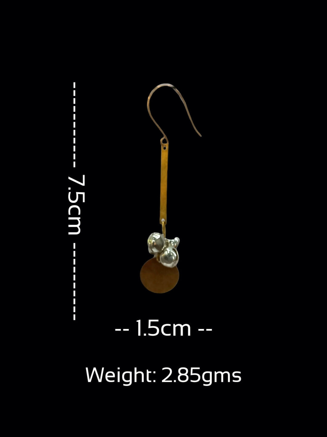 Dual Tone Long Earrings: Elevate your ensemble with the enchanting fusion of tradition and modernity embodied in these raw brass earrings adorned with silver-colored ghungroos. Each earring showcases a radiant brass design, meticulously crafted into an elegant design that captures the eye. Suspended from this brass base are miniature ghungroos, their silver-toned spheres glinting softly in the light. With their fusion of timeless craftsmanship and contemporary style, these earrings are more than just adornments; they are a testament to the beauty of cultural diversity and the enduring allure of artistic expression. Wear them with pride and let them serve as a symbol of your appreciation for both the past and the present.