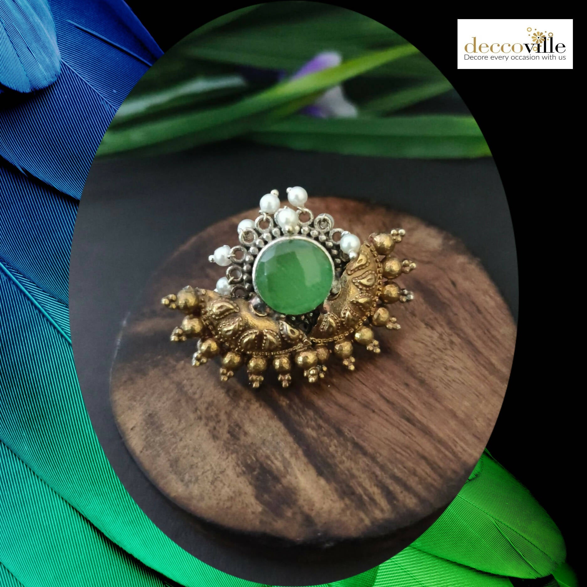 The Silver oxidized Stone Studded dual tone adjustable finger ring give you stylish look.