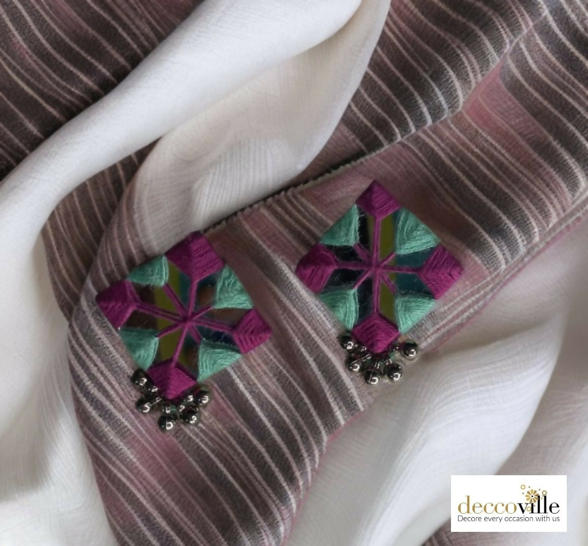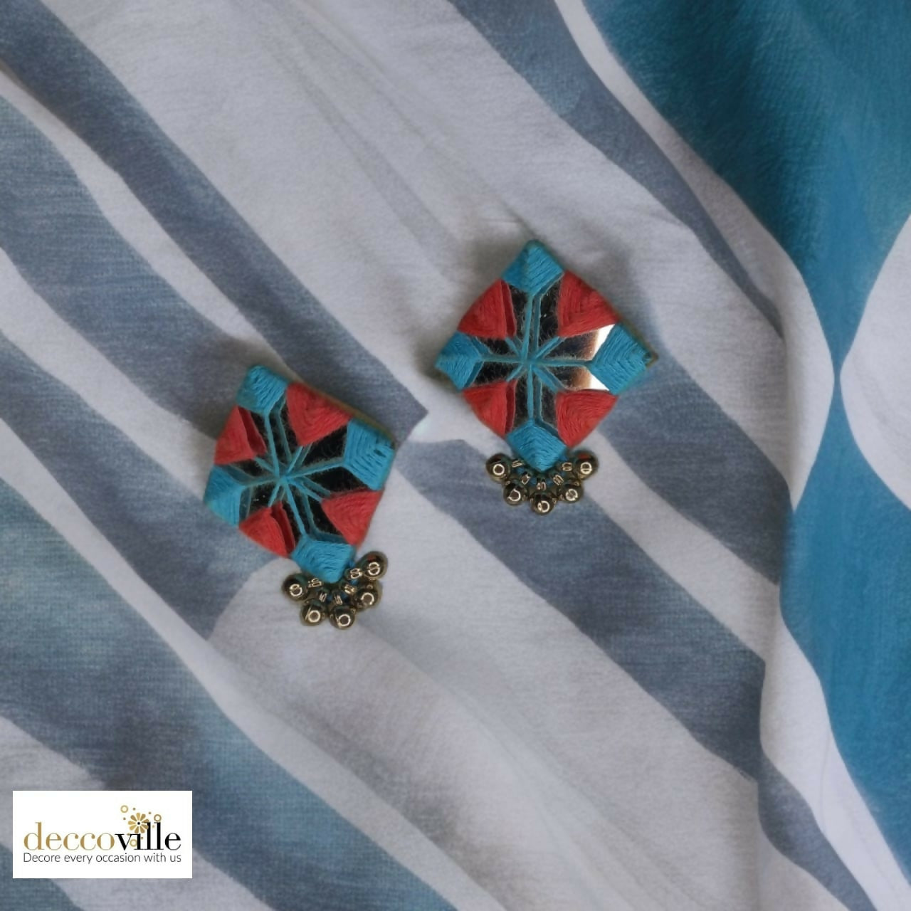 Make a bold statement with these handcrafted fabric earrings featuring a vibrant blend of textures and tradition. Adorned with mirror work and elegant German silver elements. Lightweight yet eye-catching — perfect for festive flair or everyday fusion wear.
