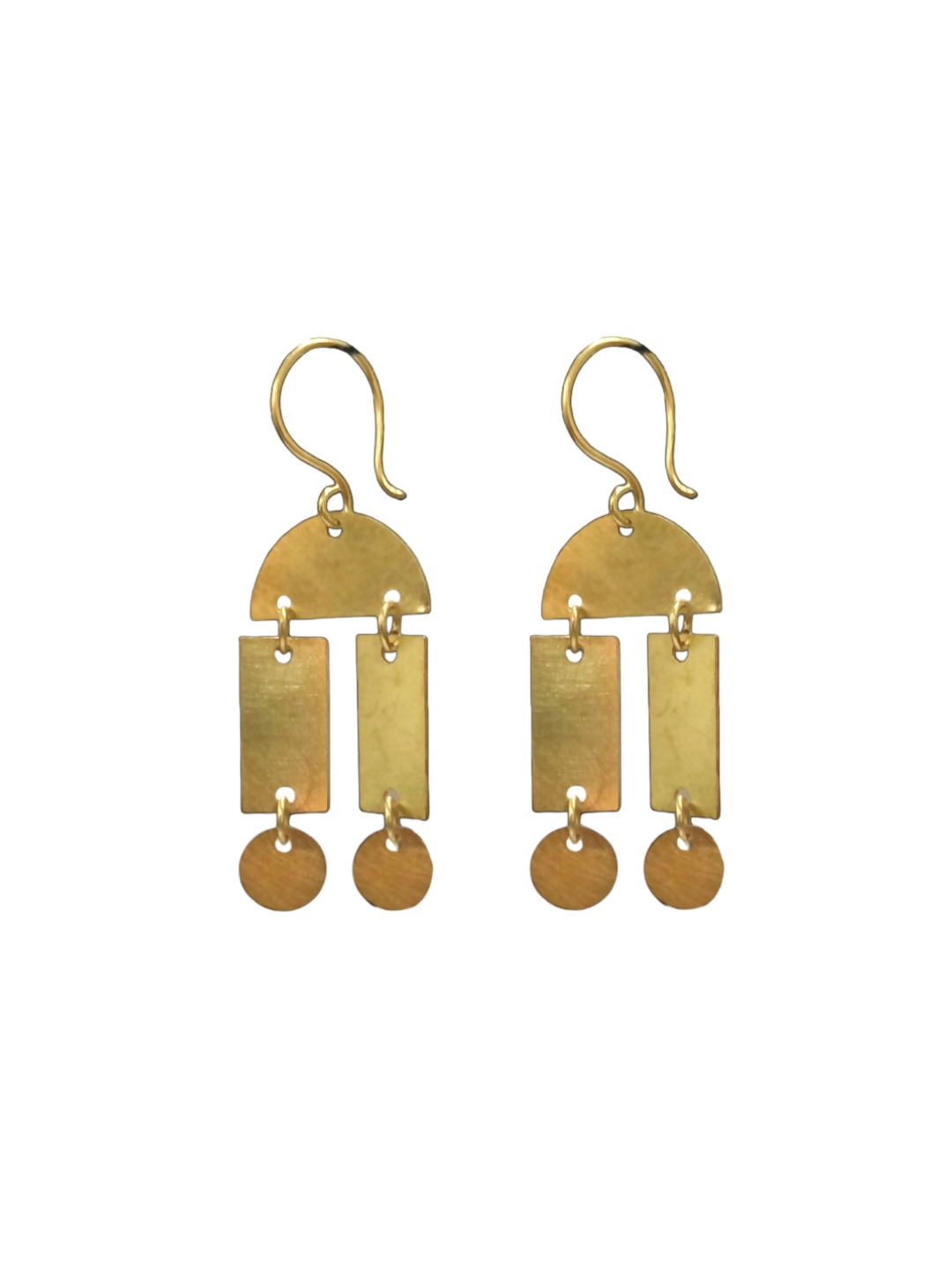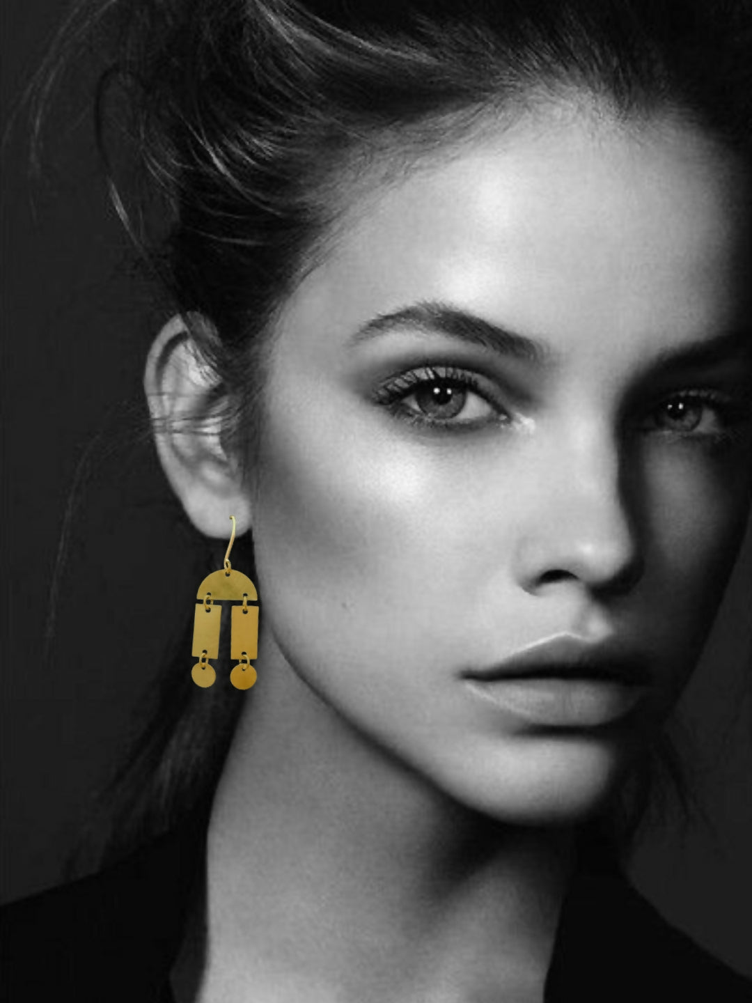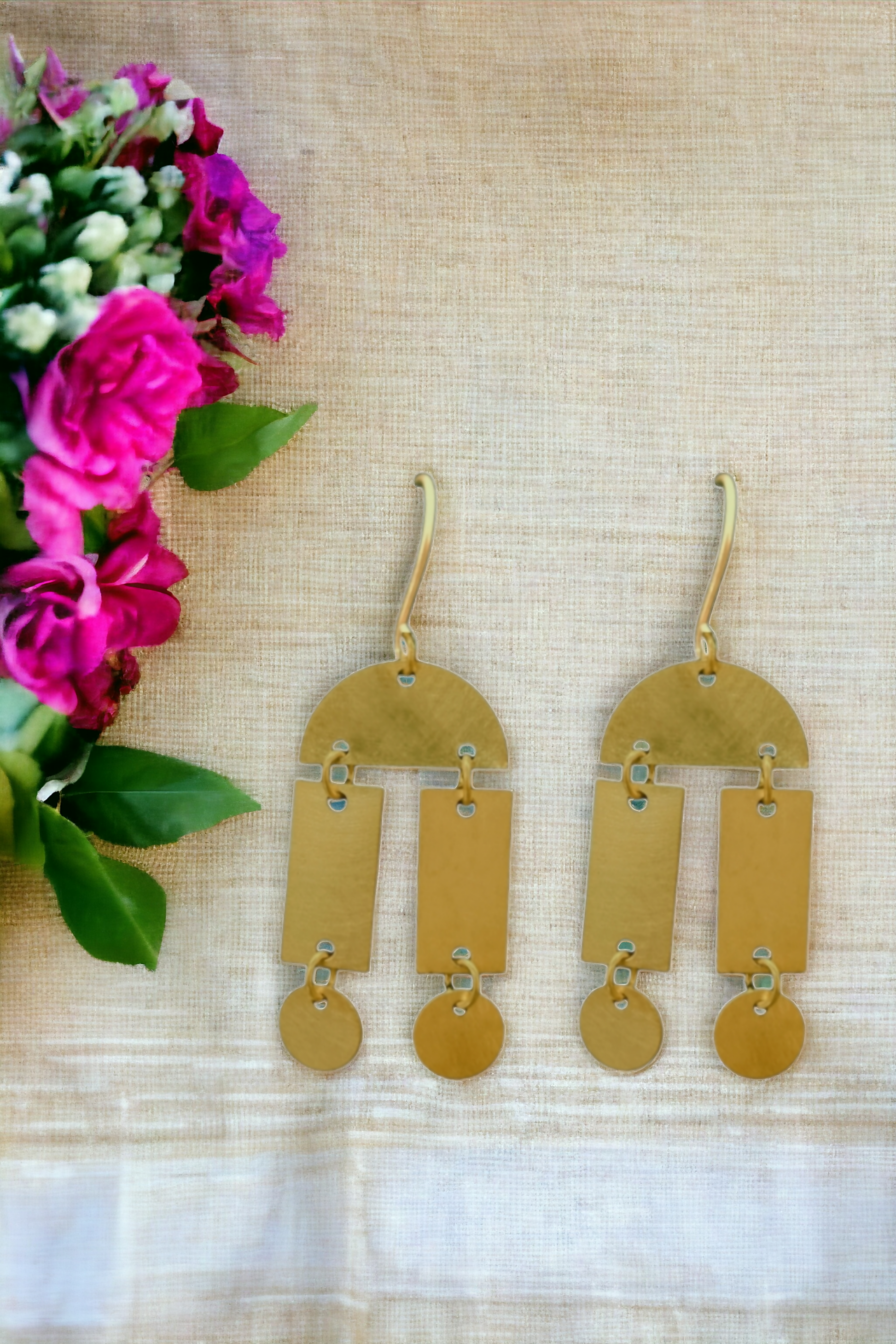 Geometric Earrings: Elevate your style with these striking geometric-shaped brass earrings, a fusion of elegance and modernity. Crafted with precision, each earring showcases a captivating interplay of angles and curves, exuding a timeless charm. The geometric design features clean lines and sleek contours, creating a captivating silhouette that catches the light with every movement. Lightweight yet durable, they offer comfort for all-day wear without compromising on style. Make a statement with these versatile earrings, perfect for adding a touch of flair to both casual and formal looks. Whether you're attending a brunch with friends or a soirée under the stars, these brass earrings are sure to turn heads and spark conversation wherever you go.