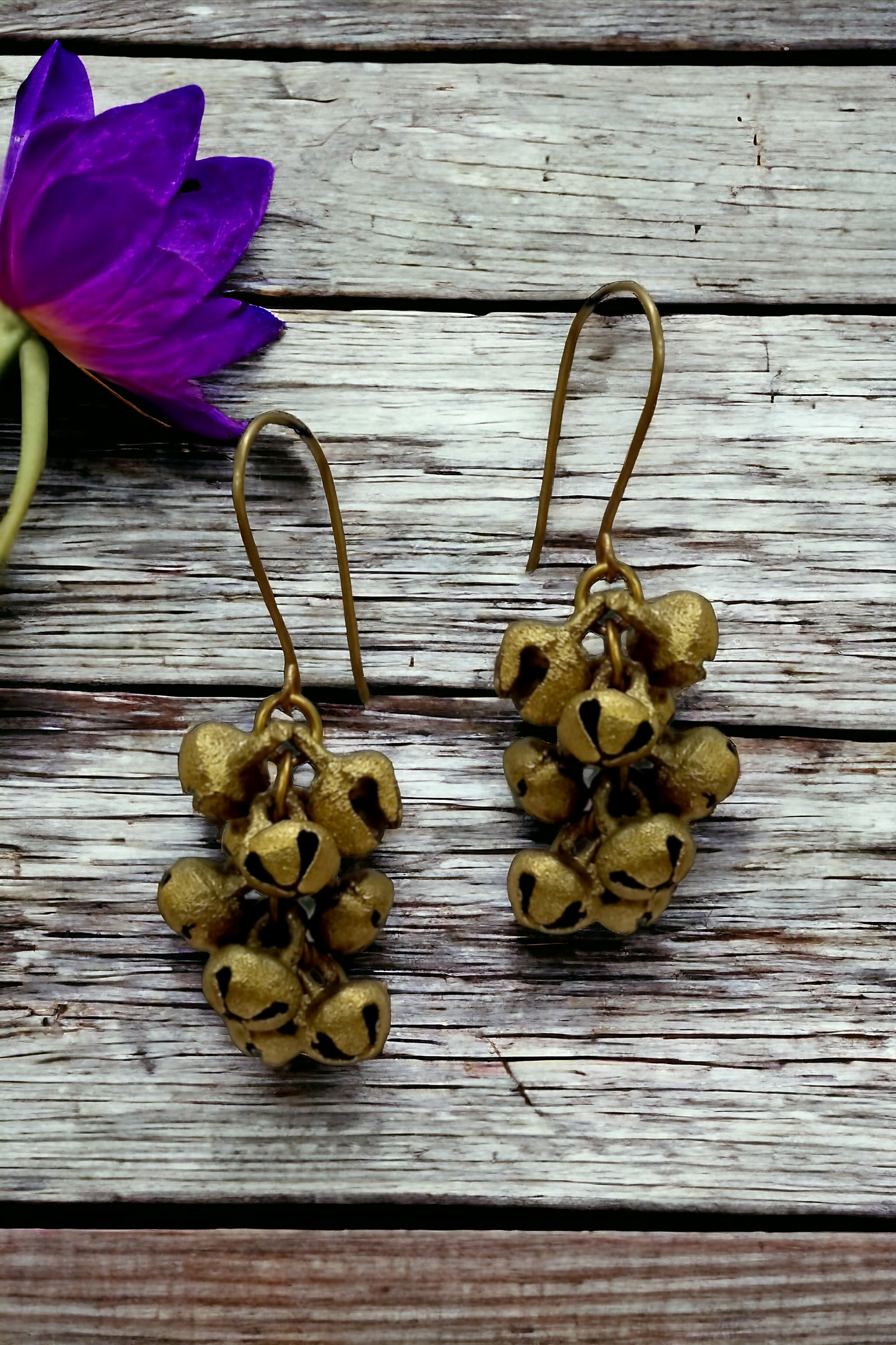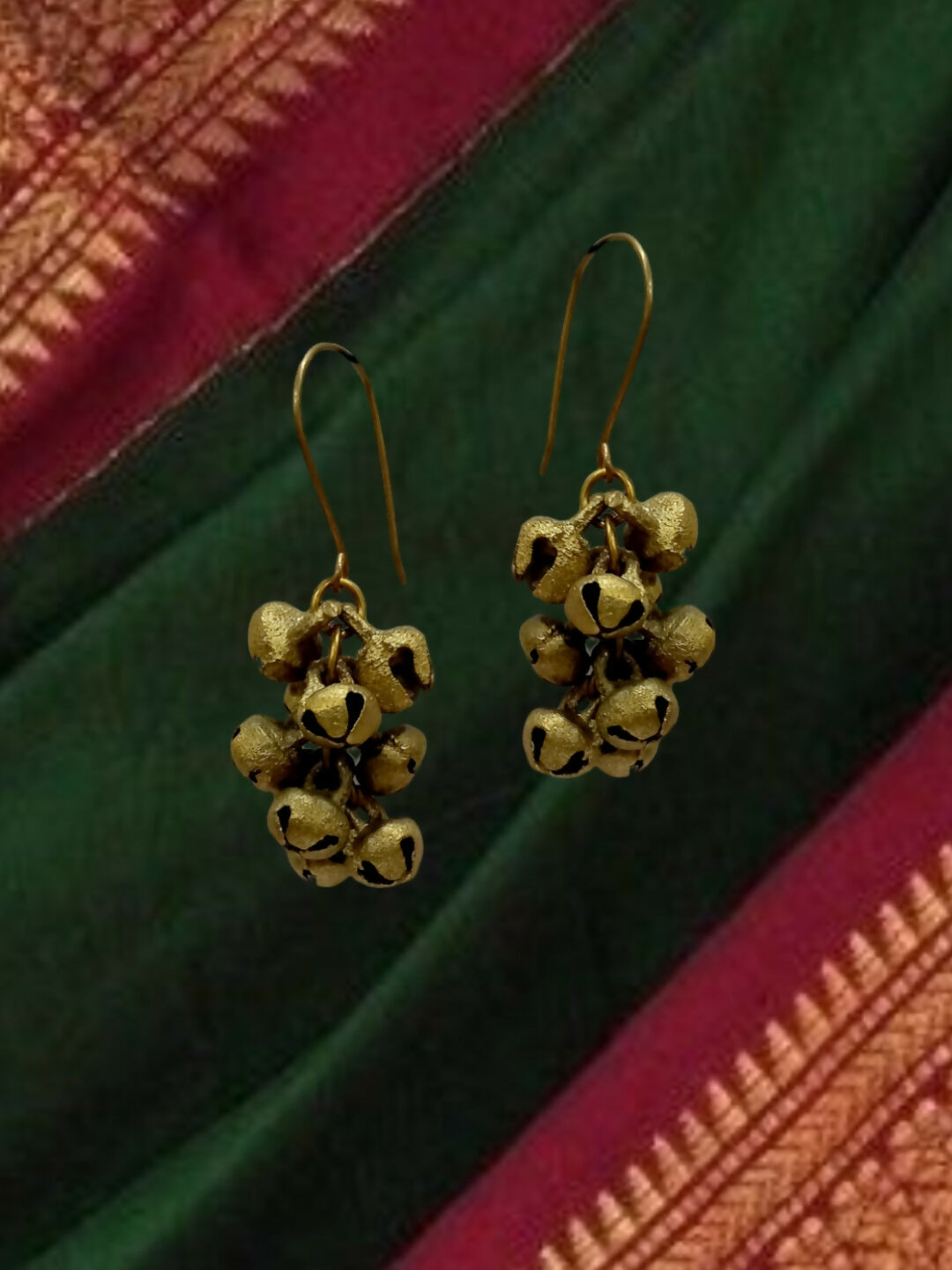 Ghungroo Big Bunch Earrings: Step into the world of rhythmic elegance with these enchanting earrings adorned with a small bunch of ghungroos. Inspired by the rich cultural heritage of traditional Indian dance, these earrings exude a sense of grace, movement, and timeless allure. The gentle sway of the ghungroos captures the essence of dance, infusing the earrings with a sense of dynamic movement and vitality. Whether worn for a special occasion or to add a touch of cultural flair to your everyday look, these earrings are sure to captivate hearts and minds with their enchanting charm. Embrace the beauty and rhythm of Indian dance with these earrings adorned with a small bunch of ghungroos, a vibrant and spirited accessory that celebrates tradition, culture, and the joy of movement in every delightful detail. Whether you're a dancer at heart or simply appreciate the artistry of traditional adornments, these earrings are sure to make a striking statement wherever you go.