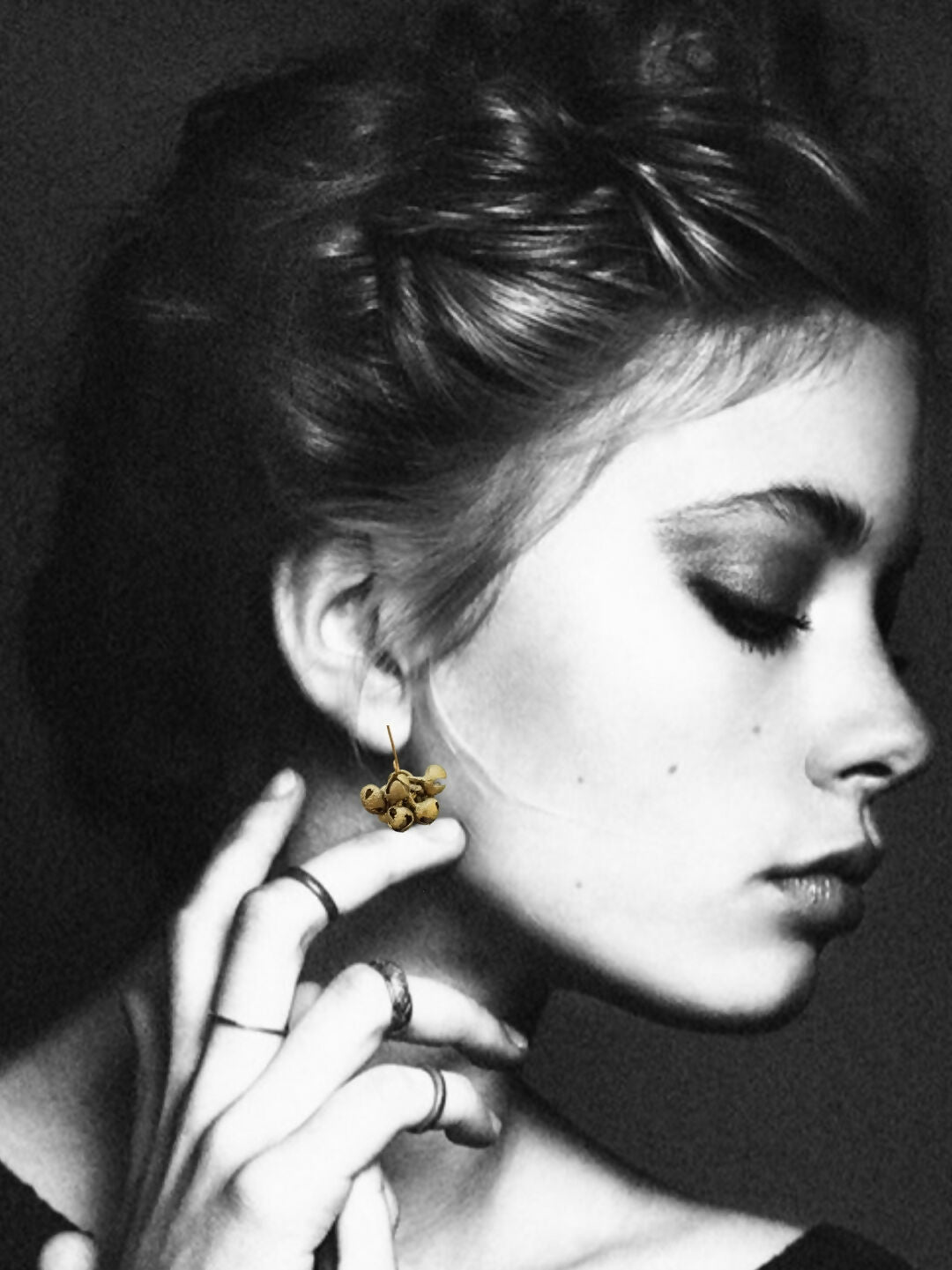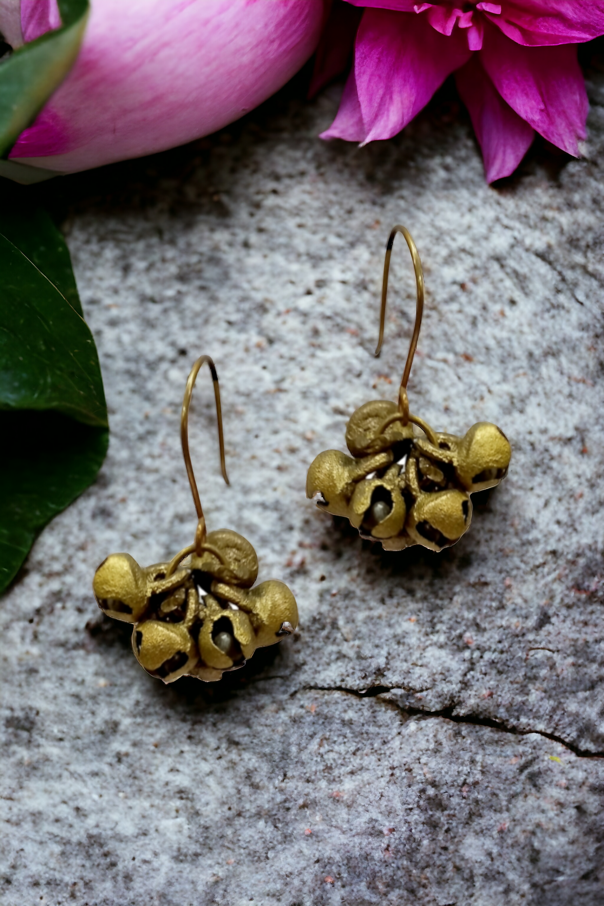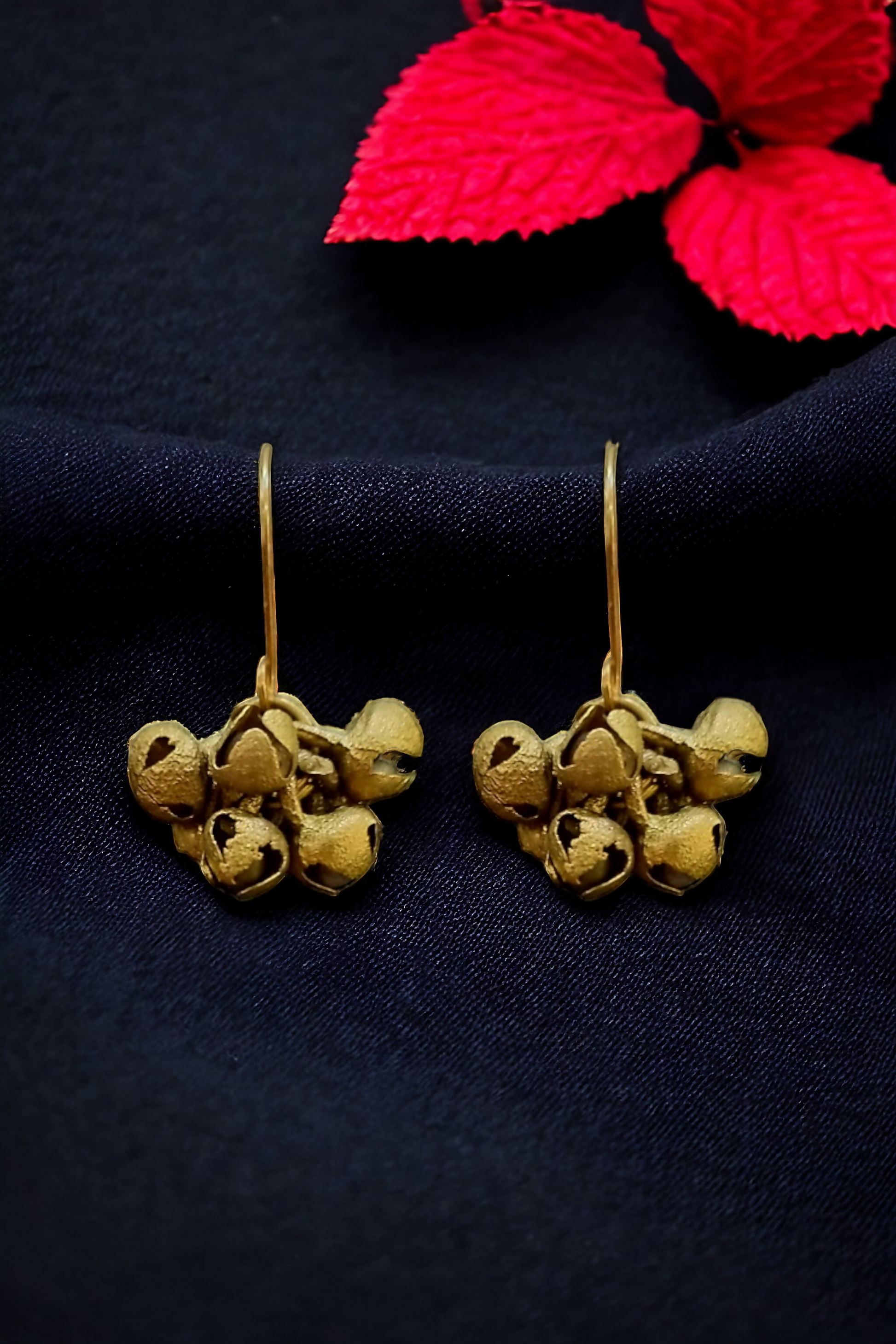 Ghungroo Small Bunch Earrings: Step into the world of rhythmic elegance with these enchanting earrings adorned with a small bunch of ghungroos. Inspired by the rich cultural heritage of traditional Indian dance, these earrings exude a sense of grace, movement, and timeless allure. The gentle sway of the ghungroos captures the essence of dance, infusing the earrings with a sense of dynamic movement and vitality. Whether worn for a special occasion or to add a touch of cultural flair to your everyday look, these earrings are sure to captivate hearts and minds with their enchanting charm. Embrace the beauty and rhythm of Indian dance with these earrings adorned with a small bunch of ghungroos, a vibrant and spirited accessory that celebrates tradition, culture, and the joy of movement in every delightful detail. Whether you're a dancer at heart or simply appreciate the artistry of traditional adornments, these earrings are sure to make a striking statement wherever you go.