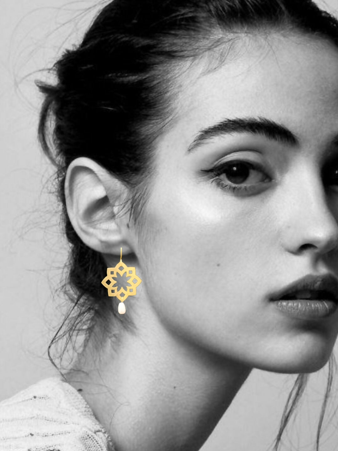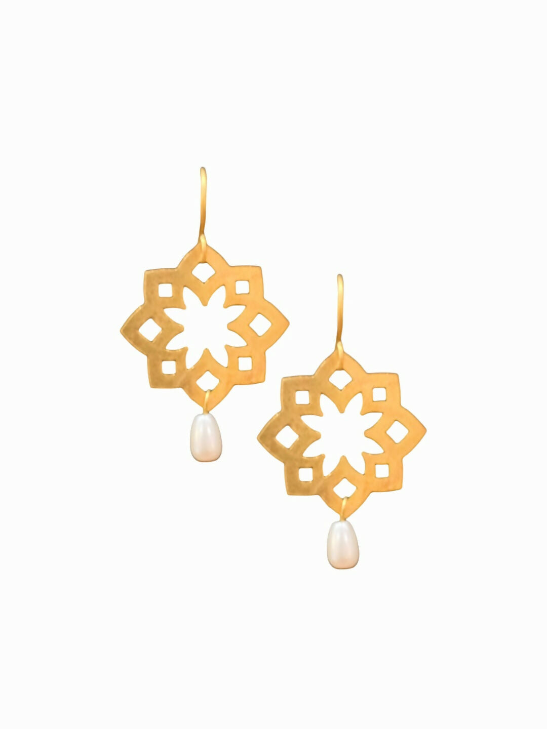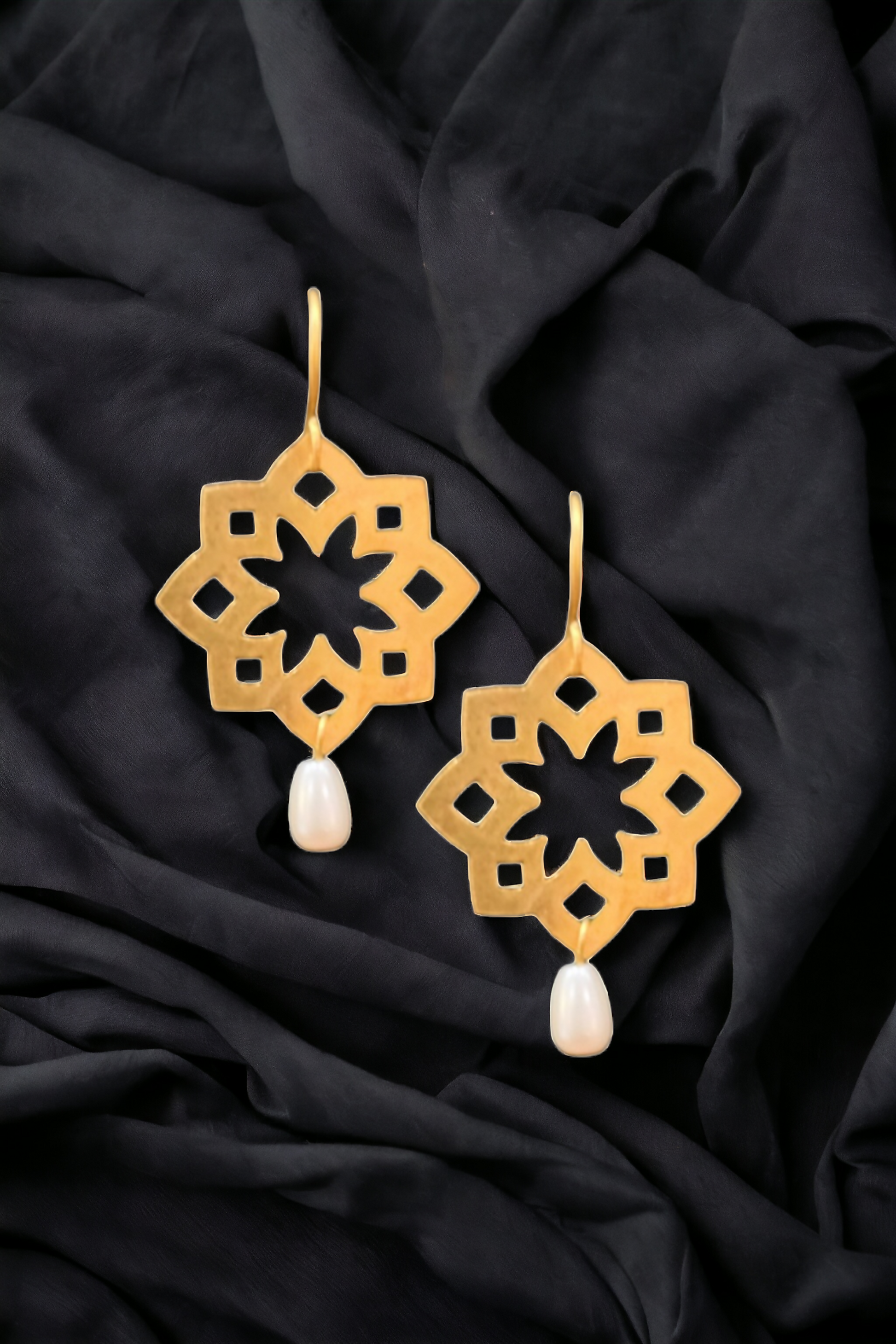 Round Nakshi with Pearl: Transport yourself to the regal courts of ancient India with these exquisite raw brass earrings, adorned with a traditional round design and lustrous hanging pearl. Each earring showcases a circular brass frame, meticulously crafted to evoke the timeless elegance of Indian jewelry. As you wear these earrings, you become a vision of timeless elegance, channeling the grace and poise of India's rich cultural heritage. Let the gentle sway of the pearl and the intricate detailing of the brass transport you to a bygone era of opulence and refinement, where every adornment told a story of beauty and tradition.
