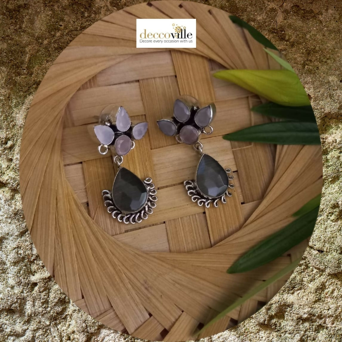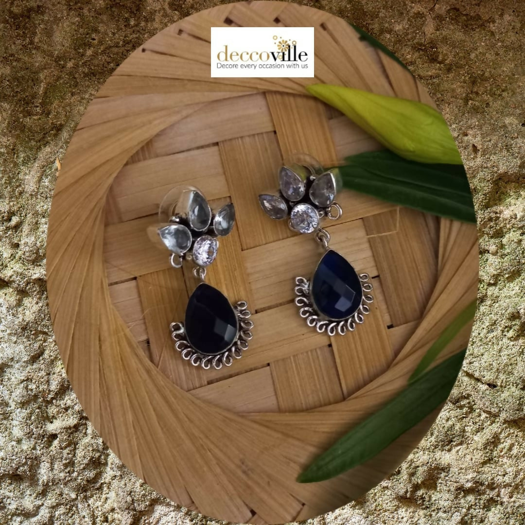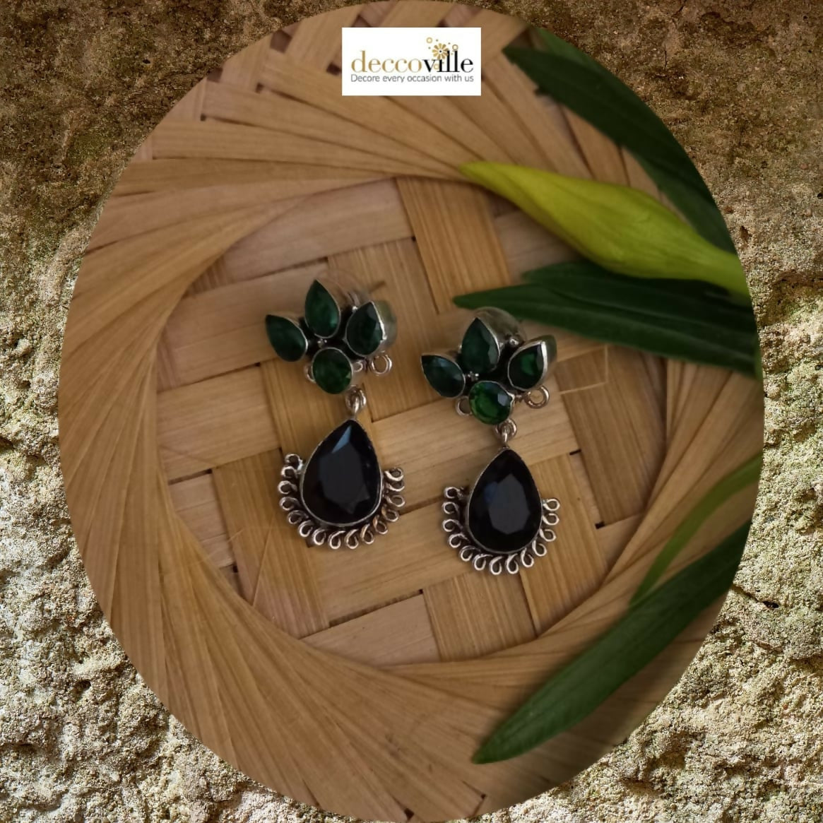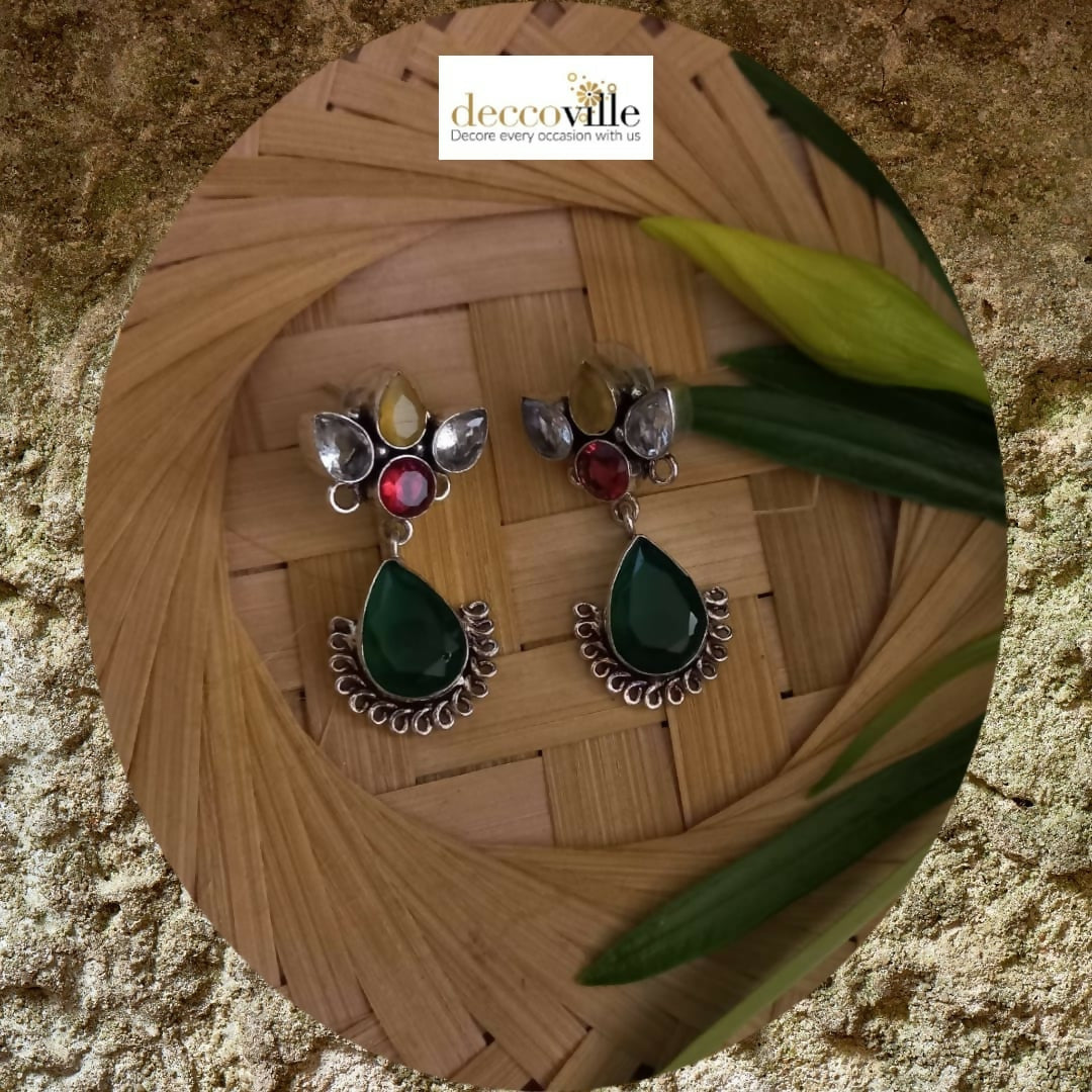 Add timeless charm to your look with these exquisite German silver stone studs. Crafted with intricate detailing and highlighted by vibrant stones, these earrings blend traditional craftsmanship with a touch of sparkle.