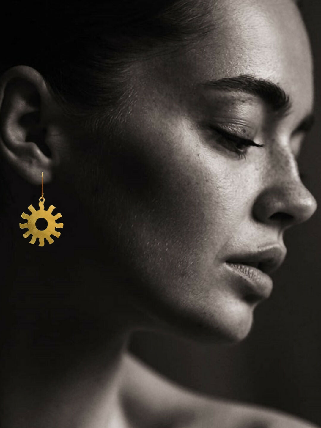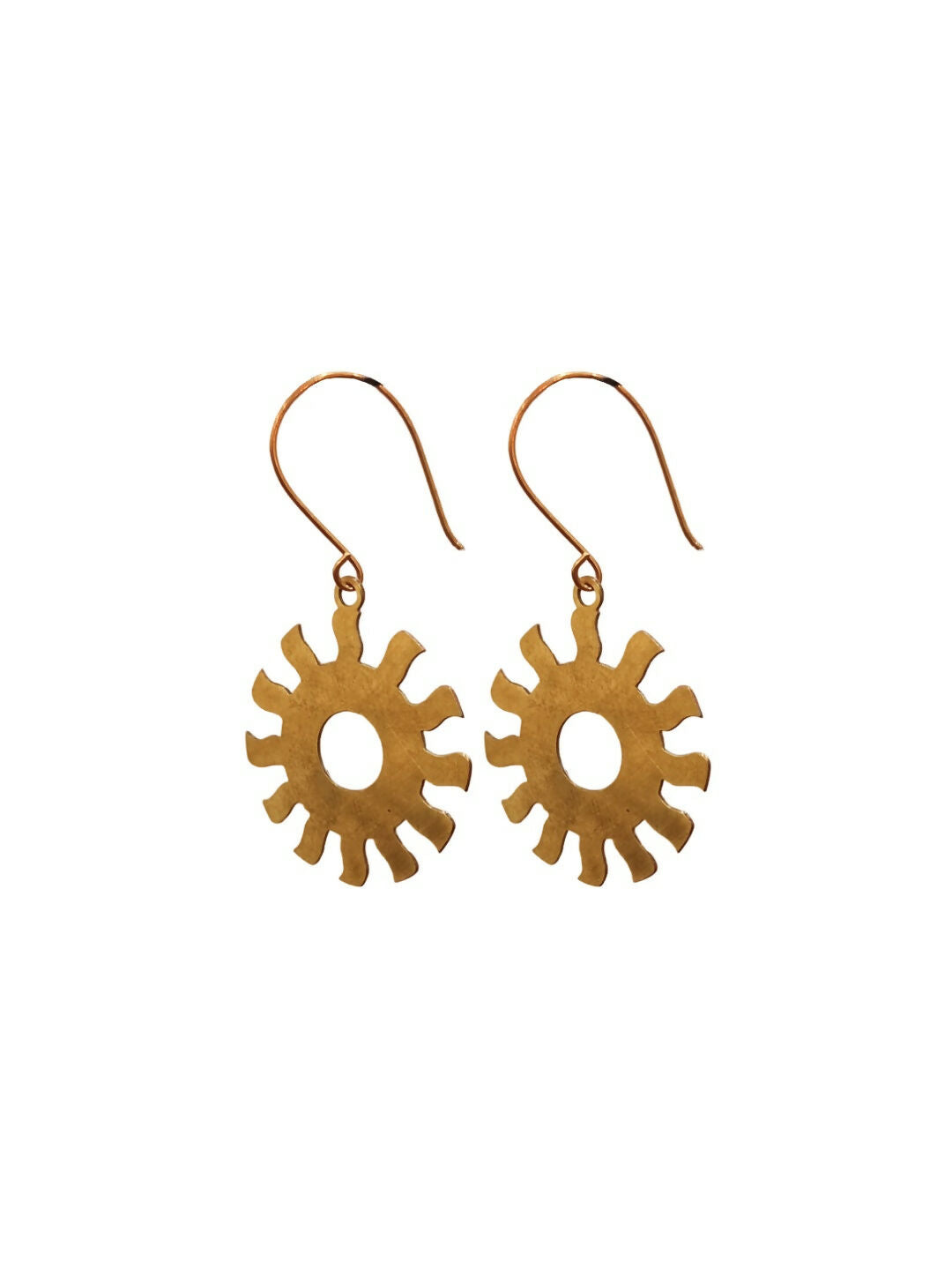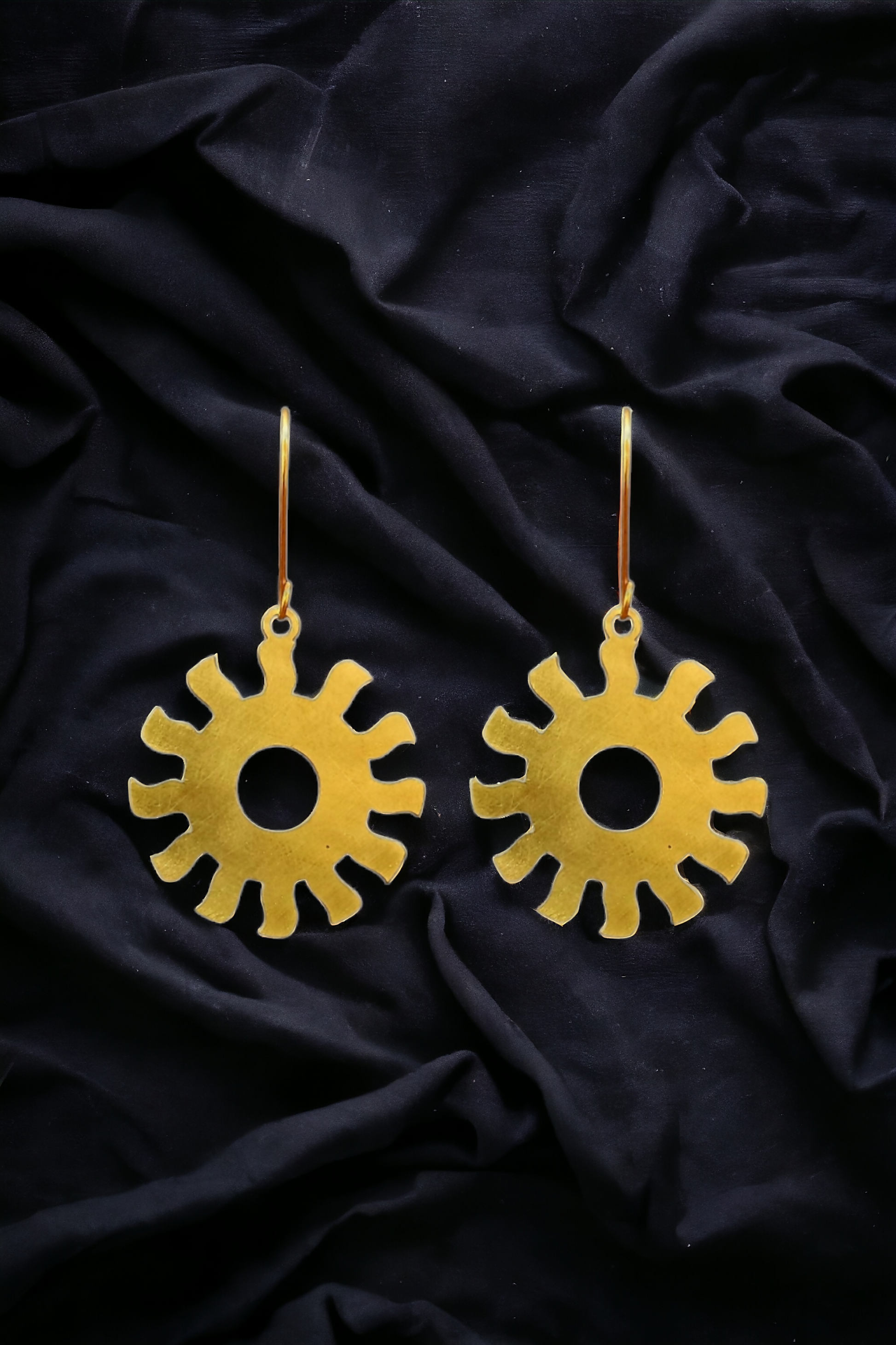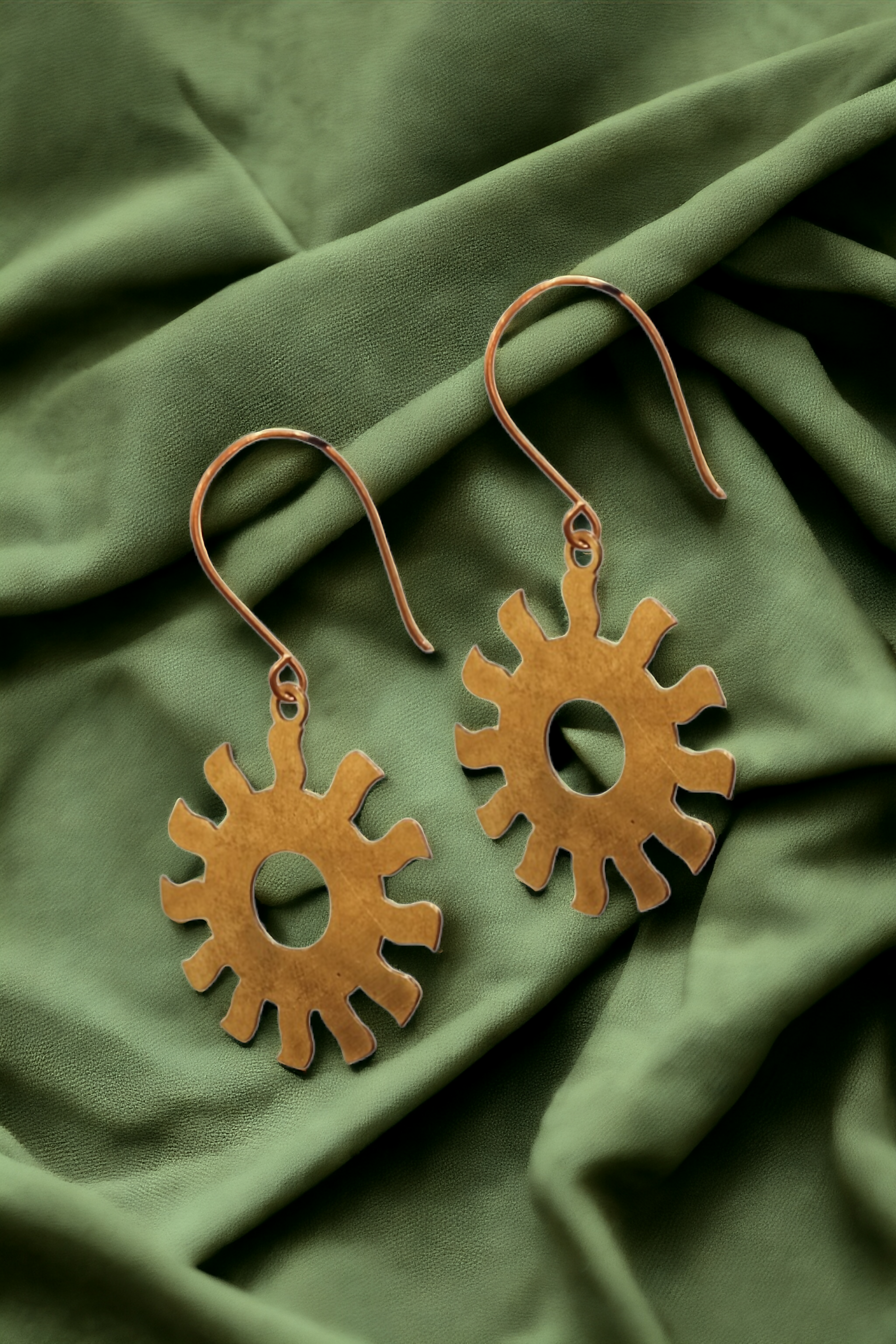 Sun Earrings: Illuminate your look with the radiant charm of these captivating sun-shaped brass earrings. Inspired by the celestial beauty of the sun, these earrings exude warmth, energy, and timeless elegance. The warm golden hue of brass adds a touch of richness and sophistication to the design, enhancing the luminous beauty of the sun motif. Whether you're seeking to brighten up your everyday ensemble or add a touch of celestial glamour to a special occasion, these earrings are sure to dazzle and delight. Whether you're soaking up the sun on a leisurely day out or dancing under the stars at a glamorous event, they make a striking statement piece that complements any style with radiant charm. Embrace the power and beauty of the sun with these sun-shaped brass earrings, a timeless accessory that captures the magic of celestial inspiration and adds a touch of brilliance to your look, wherever your adventures may take you.