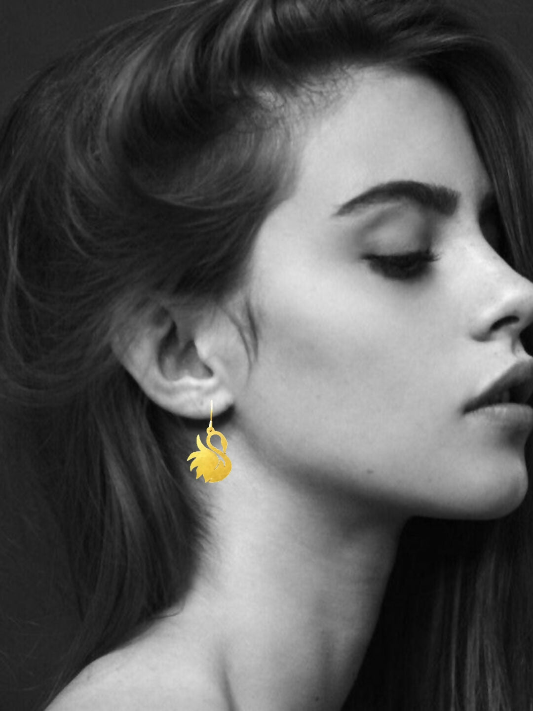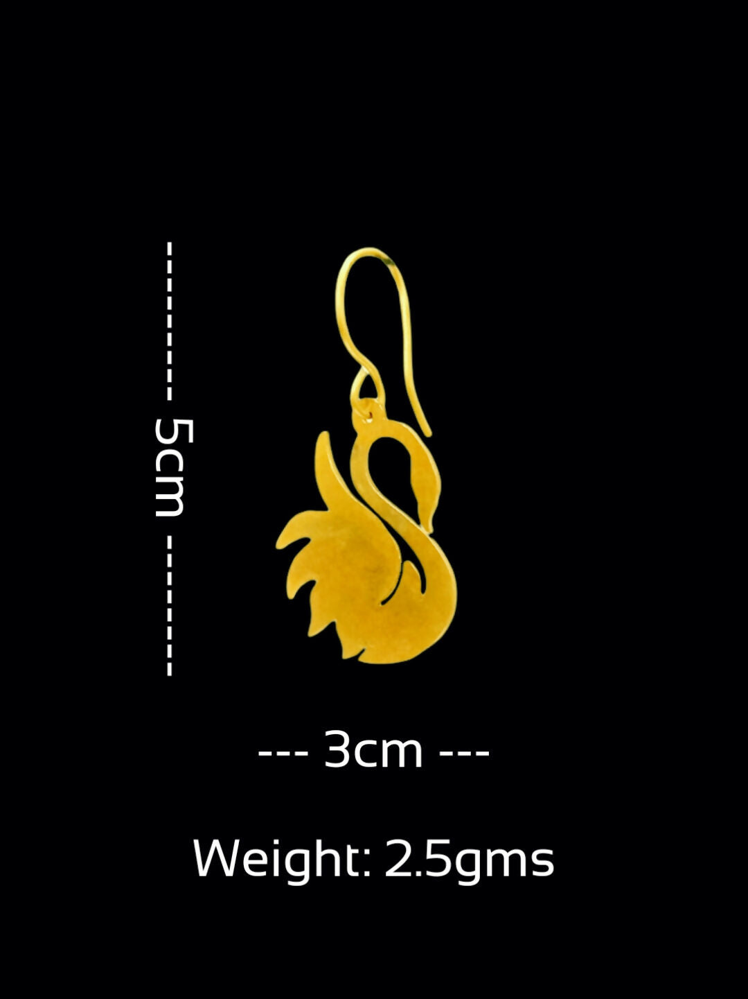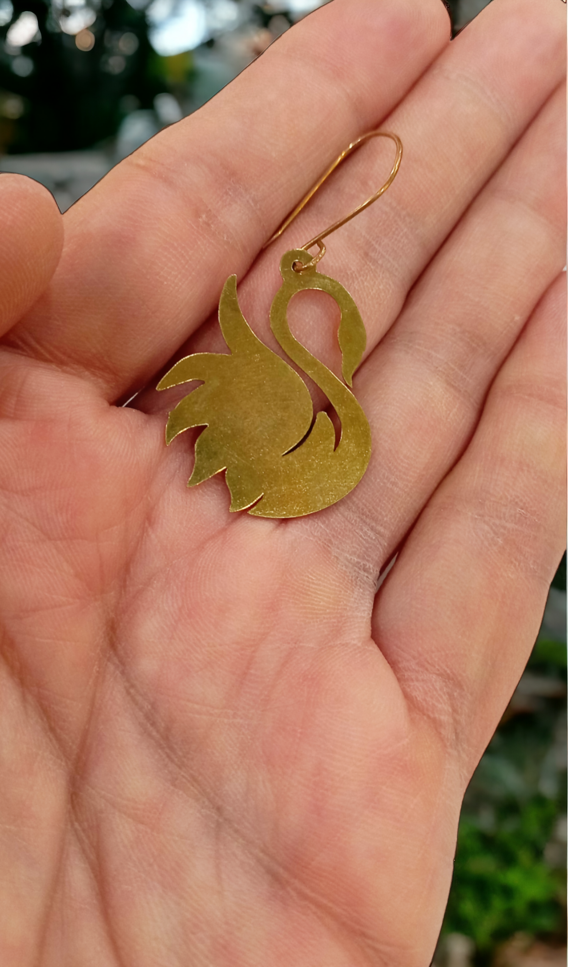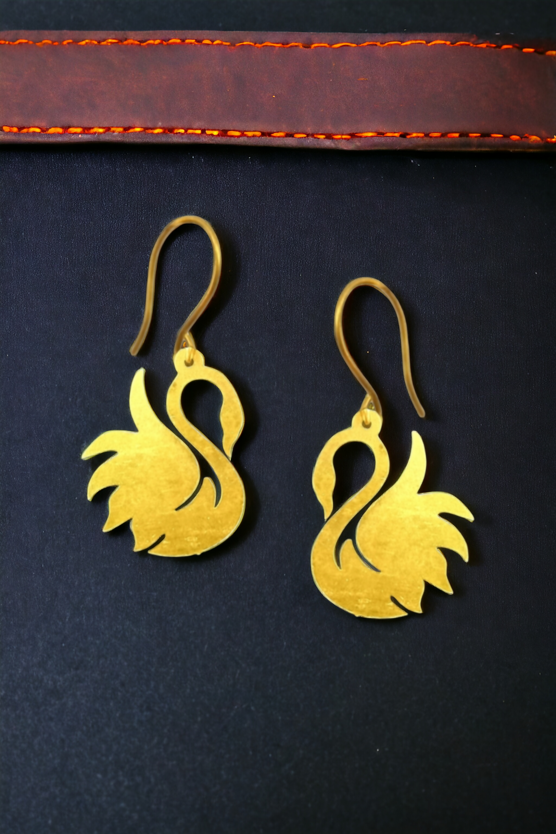 Swan Earrings: Grace your ears with the elegant allure of these enchanting swan-shaped brass earrings. Inspired by the majestic beauty of swans gliding across tranquil waters, these earrings evoke a sense of grace, poise, and timeless charm. Crafted with exquisite craftsmanship, each earring features the graceful curves and delicate details of a swan's form, meticulously rendered in gleaming brass. The sleek silhouette captures the essence of avian elegance, while the warm golden hue adds a touch of sophistication and refinement. Embrace the elegance and grace of the swan with these swan-shaped brass earrings, a symbol of beauty, love, and transformation. Whether you're a lover of avian-inspired jewelry or simply appreciate the beauty of nature, these earrings are sure to captivate hearts and minds wherever you go.