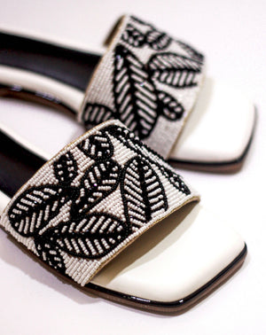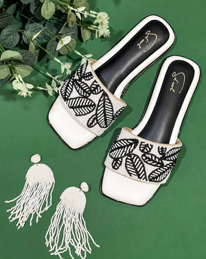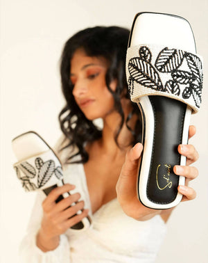 While our summer collection features flowers and bursts of colour, we dialled it back down to bring you “White Summer” specially for those who wish to create understated looks. The shoes are a monochrome fantasy that feature beads in the shape of palm leaves and will leave you longing for a beachy getaway.